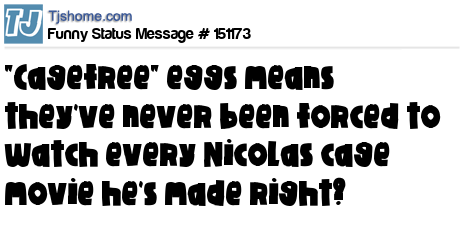 X says "Cagefree" eggs means they've never been forced to watch every Nicolas cage movie he's made right?