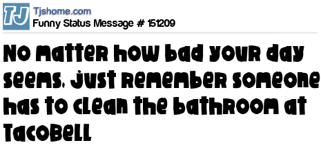 - # 98409 No matter how bad your day seems, just remember that someone out there has to clean the bathroom at Taco Bell.