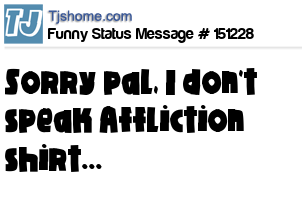X says Sorry pal, I don't speak Affliction shirt...