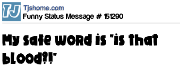 X  my safe word is "is that blood?!"