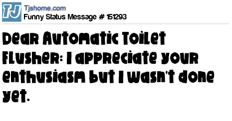 - # 166886 Dear automatic flushing toilet, I appreciate the enthusiasm... but I wasnt finished....