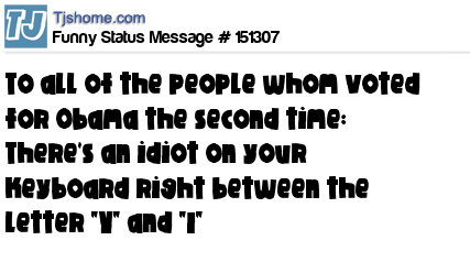 X says To all of the people whom voted for Obama the second time: There's an idiot on your keyboard right between the letter "Y" and "I"