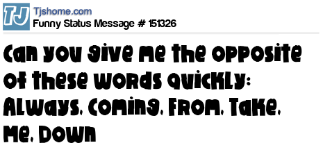 X says Can you give me the opposite of these words quickly: Always, Coming, From, Take, Me, Down