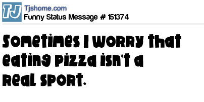 X says Sometimes I worry that eating pizza isn't a real sport.