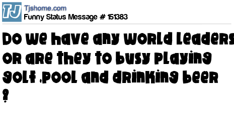 X says do we have any world leaders or are they to busy playing golf ,pool and drinking beer ?