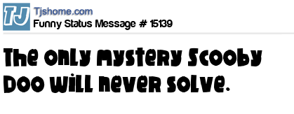 - # 200074 To me the greatest mystery of scooby doo was whether scooby snacks were human food they fed to scooby or dog food they fed to shaggy