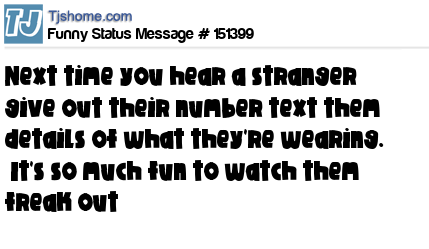 - # 106255 Next time you over hear a stranger giving out their number. Text them details of what they are wearing. It's so fun to watch them freak out!