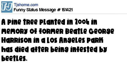 - # 167842 A George Harrison memorial tree was killed by actual beetles. No word yet on if Davy Jones memorial was attacked by monkeys.