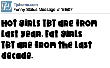 X Hot girls TBT are from last year. Fat girls TBT are from the last decade.