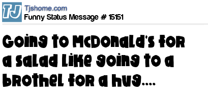 - # 6909 Realized that going to McDonalds for a salad has the temptation equivalent of going to a brothel for a hug.