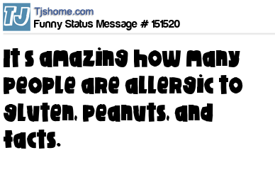 - # 142911 It's amazing how many people are allergic to gluten, peanuts, and facts.