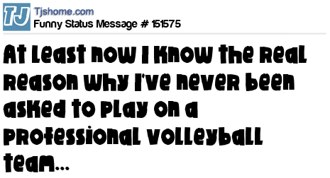 X At least now I know the real reason why I've never been asked to play on a professional volleyball team...