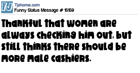 X is thankful that women are always checking him out, but still thinks there should be more male cashiers.