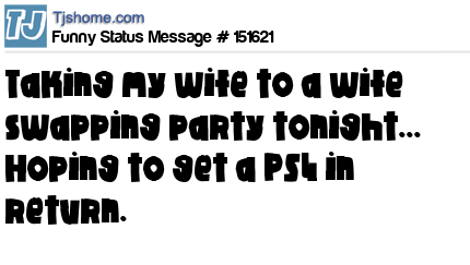 X says Taking my wife to a wife swapping party tonight... Hoping to get a PS4 in return.