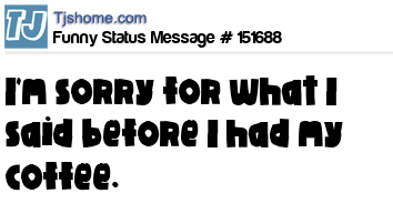 - # 166064 I love how coffee fixes everything. Tired? Drink some coffee. Headache? Drink coffee. Cold? Drink coffee. Someone makes your angry? Bust them in the head with the cup!!!