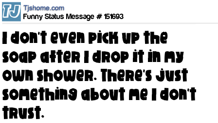 X says I don't even pick up the soap after I drop it in my own shower. There's just something about me I don't trust.
