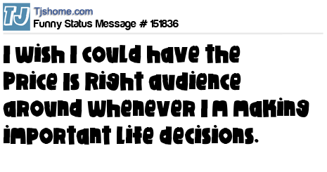 X says I wish I could have the Price Is Right audience around whenever I’m making important life decisions.