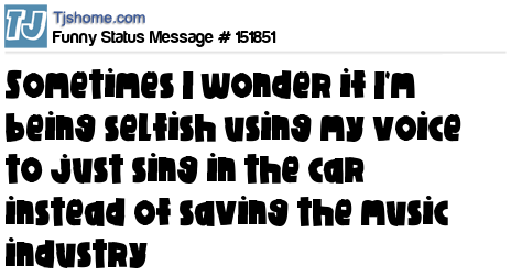 - # 107698 Sometimes I wonder if I'm being selfish by using my voice to just sing in the car instead of to save the music industry..