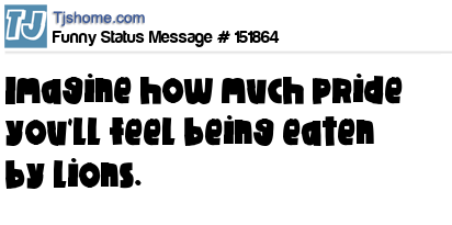 - # 151571 I feel bad for lions at zoos. How would you feel if a bunch of pizzas came to your house, took your picture, and you couldn’t even eat them?
