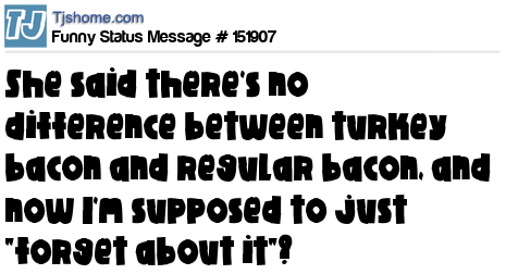 X says She said there's no difference between turkey bacon and regular bacon, and now I'm supposed to just "forget about it"?
