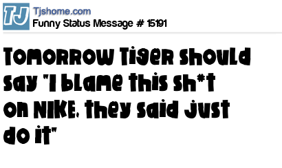 X  Tomorrow Tiger should say "I blame this sh*t on NIKE, they said just do it"