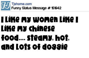 X I like my women like I like my chinese food.... steamy, hot, and lots of doggie