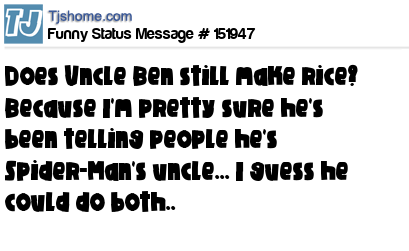 X Does Uncle Ben still make rice? Because I'm pretty sure he's been telling people he's Spider-Man's uncle... I guess he could do both..