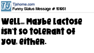 X Well,,, Maybe lactose isn't so tolerant of you, either.
