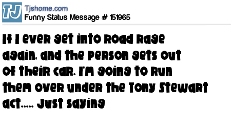 X says If I ever get into road rage again, and the person gets out of their car. I'm going to run them over under the Tony Stewart act..... Just saying