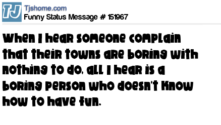 X says When I hear someone complain that their towns are boring with nothing to do, all I hear is a boring person who doesn't know how to have fun.