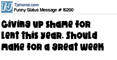 - # 15102 thinks that unless you people can come up with a better idea...she'll be giving up her vow of celibacy for Lent this year