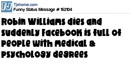 X Robin Williams dies and suddenly Facebook is full of people with medical & psychology degrees
