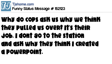 X says Why do cops ask us why we think they pulled us over? It's their job. I dont go to the station and ask why they think I created a powerpoint.