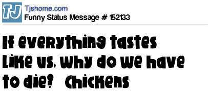 - # 210834 If everything tastes like us, then why do we have to die? –Chickens