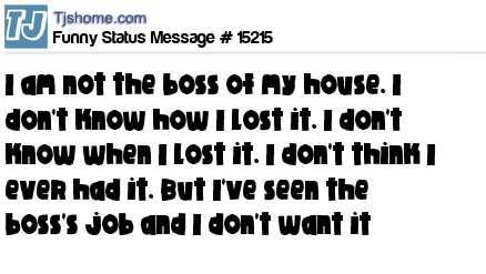 X says I am not the boss of my house. I don't know how I lost it. I don't know when I lost it. I don't think I ever had it. But I've seen the boss's job and I don't want it