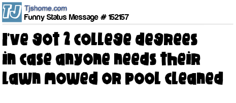 X says I've got 2 college degrees in case anyone needs their lawn mowed or pool cleaned