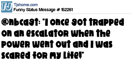 - # 127345 I went to the mall today and the power went out, I was stuck on the escalator for 30 minutes.