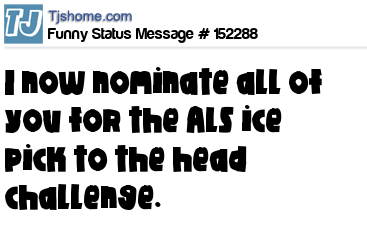 X I now nominate all of you for the ALS ice pick to the head challenge.