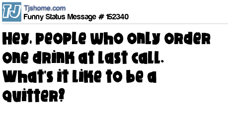 X says Hey, people who only order one drink at last call. What's it like to be a quitter?