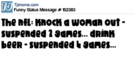 X says the nfl: knock a woman out - suspended 2 games... drink beer - suspended 4 games...
