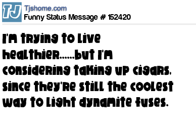 X says I'm trying to live healthier......but I'm considering taking up cigars, since they're still the coolest way to light dynamite fuses.