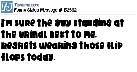 - # 160057 I bet the guy at the urinal next to me is now rethinking his decision to wear flip flops today.