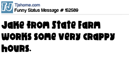 - # 192517 There's probably an employee named Jake who works at State Farm, who's had it with people's jokes and is about to go postal.