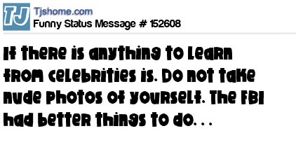 X says If there is anything to learn from celebrities is. Do not take nude photos of yourself. The FBI had better things to do. . .