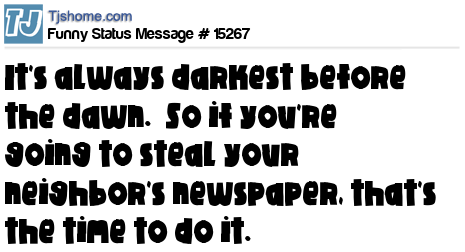 - # 197040 It's always darkest before dawn. So if you're going to steal your neighbor's newspaper, that's the time to do it.