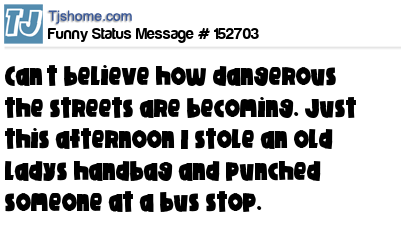 X says Can’t believe how dangerous the streets are becoming. Just this afternoon I stole an old ladys handbag and punched someone at a bus stop.