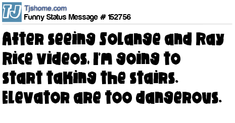 X says After seeing Solange and Ray Rice videos, I'm going to start taking the stairs. Elevator are too dangerous.