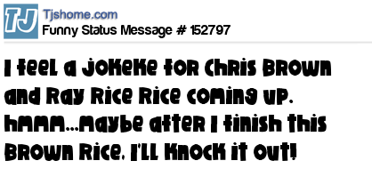 X I feel a jokeke for Chris Brown and Ray Rice Rice coming up. hmmm...maybe after I finish this Brown Rice, I'll knock it out!