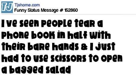 X says I’ve seen people tear a phone book in half with their bare hands & I just had to use scissors to open a bagged salad