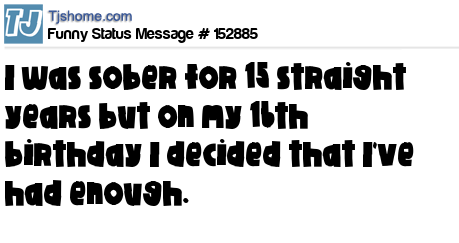 X says I was sober for 15 straight years but on my 16th birthday I decided that I've had enough.